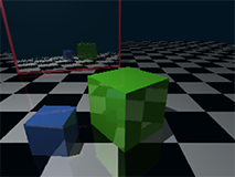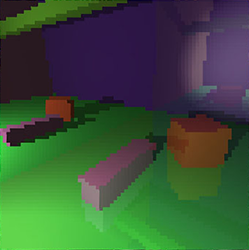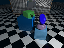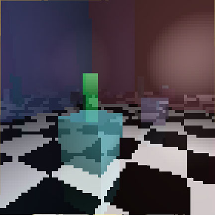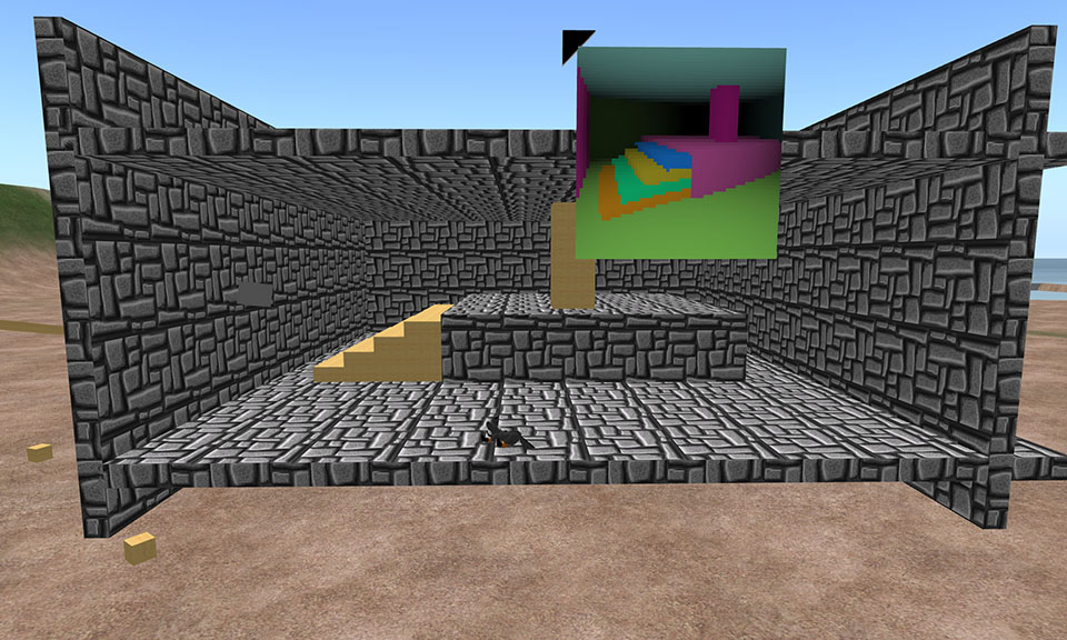 The hardest part about building the raytracer in Second Life, however, was the limited amount of data you could collect about the 3D world from a script. You could get an object's position, rotation, and size, but no data about shape. Initially for the raytracer, I assumed all objects were cubes.