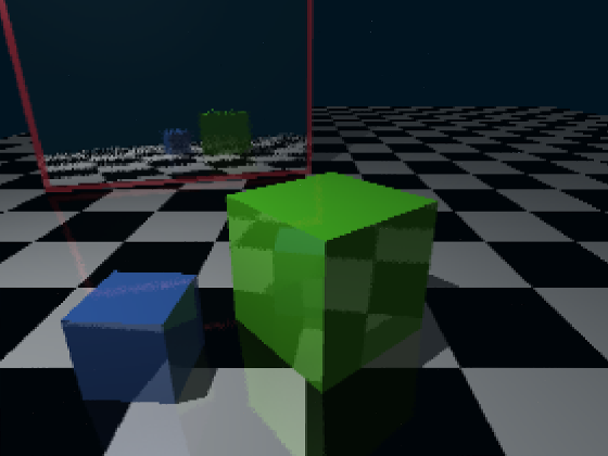 Next came reflections. Since I already had code for drawing a ray and seeing where in a scene it collided with, adding shadows/reflections was surprisingly easy to do. I simply bounced the ray off the surface of and then drew another ray, and averaged the results based on the reflectivity of the first object.